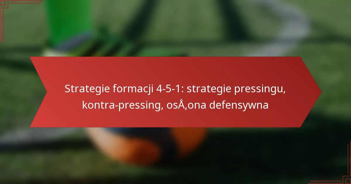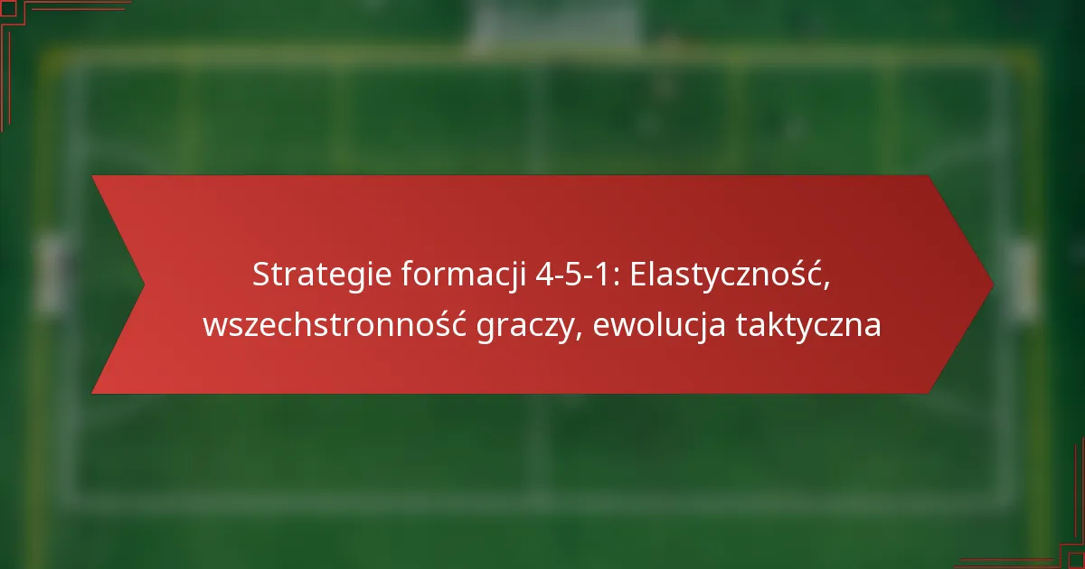 Formacja 4-5-1 to taktyczny układ w piłce nożnej, który składa się z czterech obrońców, pięciu pomocników i jednego napastnika. Ta formacja ma na celu zapewnienie silnej obecności w środku pola, jednocześnie umożliwiając stabilność defensywną i okazje do kontrataków.