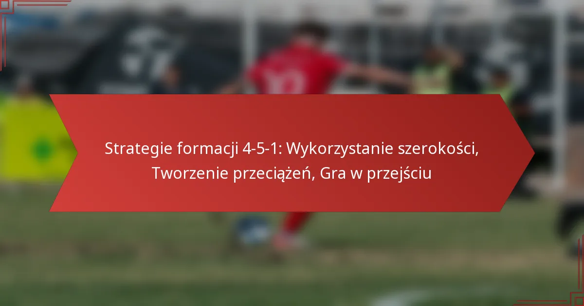 Przechodzenie z obrony do ataku w formacji 4-5-1 wymaga szybkiego ruchu piłki i skutecznej komunikacji. Gdy tylko piłka zostanie odzyskana, pomocnicy powinni dążyć do rozprowadzenia piłki do skrzydłowych lub napastnika. Kluczowe jest wykorzystanie przestrzeni pozostawionej przez przeciwnika, gdy zaangażują oni zawodników w atak, co umożliwia szybkie kontrataki.